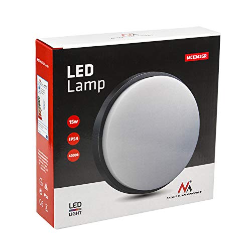 Maclean MCE342 GR Lampada da Parete e Soffitto 15W 1100lm IP54 (Grigio, Rotondo)