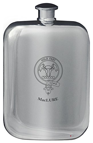 Maclure Famiglia Crest design Pocket Hip Flask 6 oz arrotondato peltro lucido
