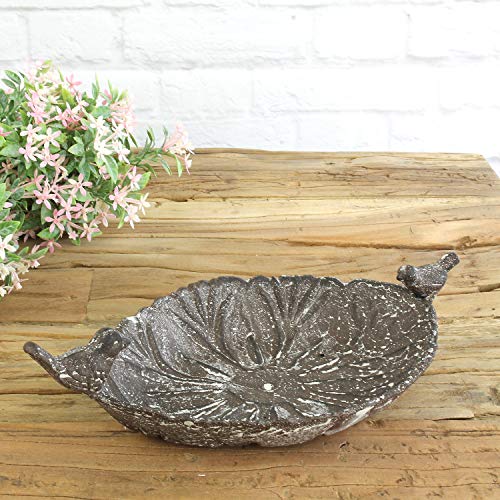 MACOSA EX23996 - Abbeveratoio per uccelli in metallo con uccellini decorativi, stile shabby chic, ovale
