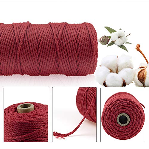 Macrame Corda 3mm*100m Filo Macrame Cotone, Filato Macrame Rosso Naturale Corda Cotone per Macramè Acchiappasogni Tende Wall Hanging Vaso Arazzo Festa Natale
