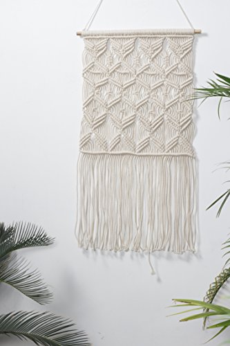Una bella Macrame da appendere alla parete fatta a mano con corda in cotone naturale al 100%, dimensione (34 x 18 pollici))