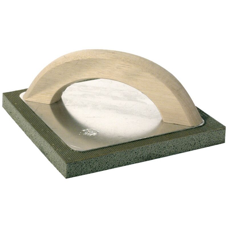 Supporto in alluminio, manico in legno.gomma spugna mm 14, dura.colore grigio.cm 14 x 14