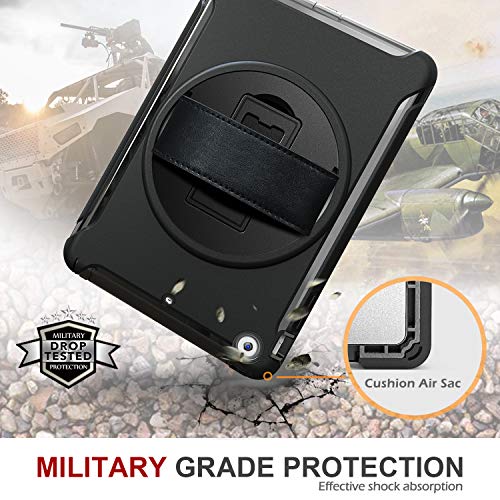 MadeRy Bambini Custodia per iPad Mini 3 / Mini 2 / Mini 7.9 Pollice, Robusto Antiurto Cover Protettiva con Cinturino a Mano e Kickstand Rotante. (Nero)