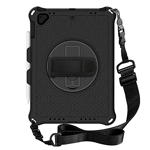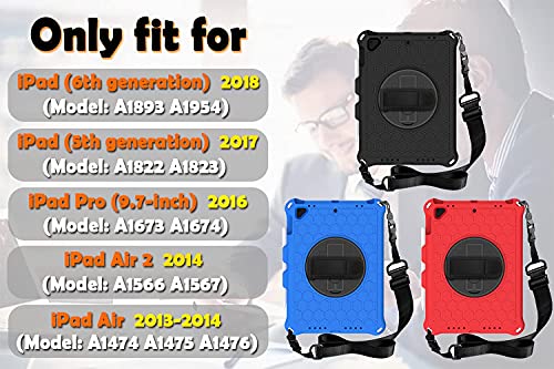 MadeRy Custodia per iPad 2018 & 2017 9.7" / iPad Pro 9.7" / iPad Air 2 / iPad Air, Leggera Protettiva Bambino Cover Antiurto con Rotante Staffa e Tracolla, Nero