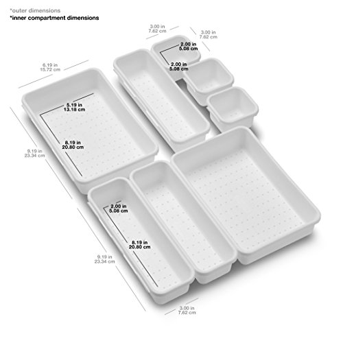 Madesmart, Set di 8 vaschette componibili, Colore Bianco