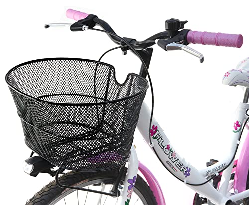 MADICKS Bicicletta Bambina Ragazza da Passeggio Misura 24 Bici con Cestino Floreale Bianco Rosa