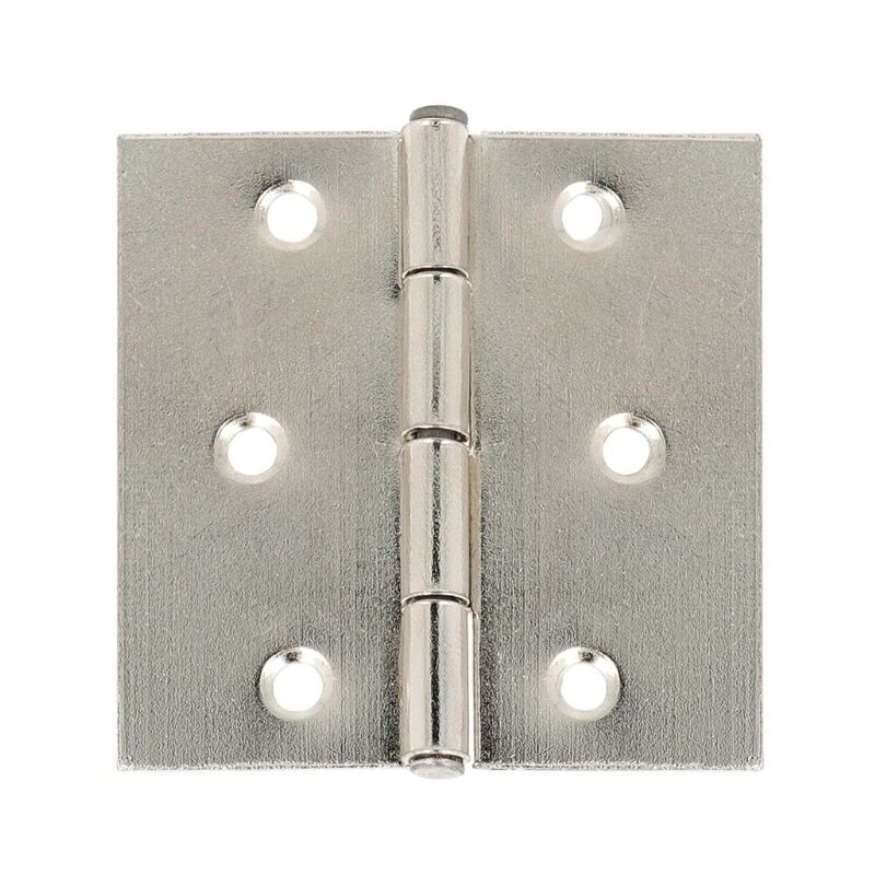 2 pezzi - cerniere quadre in ferro nichelato a spina fissa 60x50mm con viti