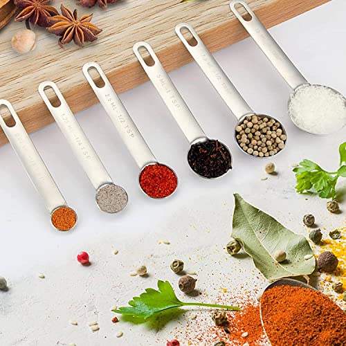 MADOC Cucchiaini Misuratori in Acciaio Inossidabile, Cucchiaino Piccolo, Cucchiaini, 6 Livellatore Aggiuntivo, per Secco e Liquido