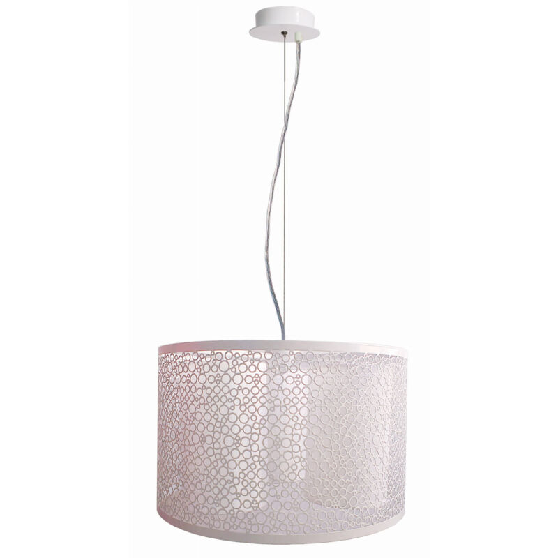 sospeso su sospensione con soffitto in metallo Materiale: sospensione in acciaio con corda, paralume in metallo con motivo ritagliato Colore di base: bianco Altezza: 115 Larghezza: 40 Profondità: 40 Dimensioni (altezza/larghezza/profondità): 115x40x40 Peso (netto ): 1,77 LED integrati: No Numero di sorgenti luminose: 3 Include una sorgente luminosa: No Numero di sorgenti x presa: 3xE14