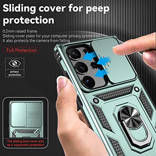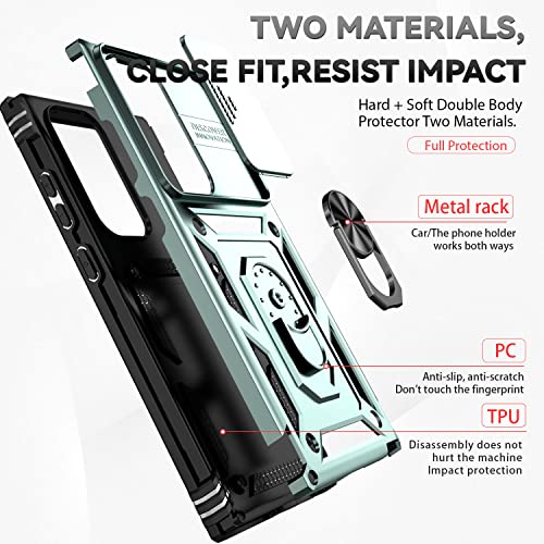 Madsss Per Cover Samsung Galaxy S23 Ultra, Protezione Fotocamera [Slidable] Custodia Antiurto Grado Militare 360° Magnetica Anello Supporto TPU Bumper Silicone Custodie. Verde