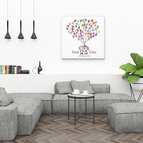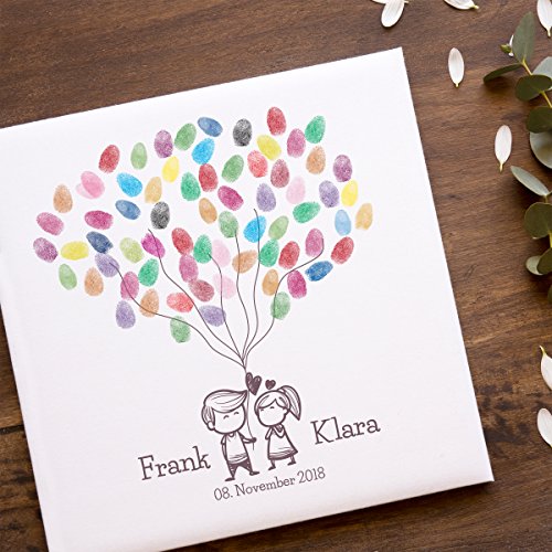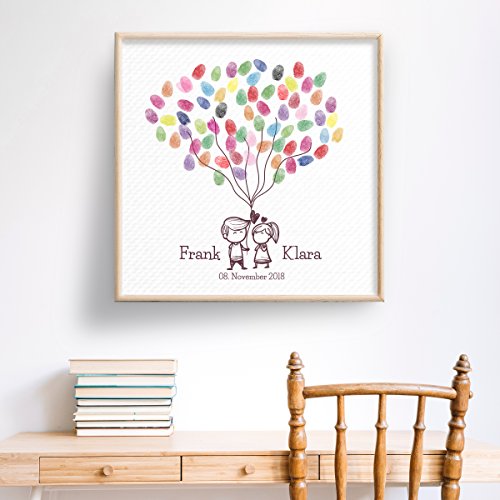 Stampa su tela di alta qualità con colori ricchi su tela piena. Tutti gli invitati al matrimonio possono lasciare le loro impronte digitali. Ideale per francobolli e per scrivere con penne.