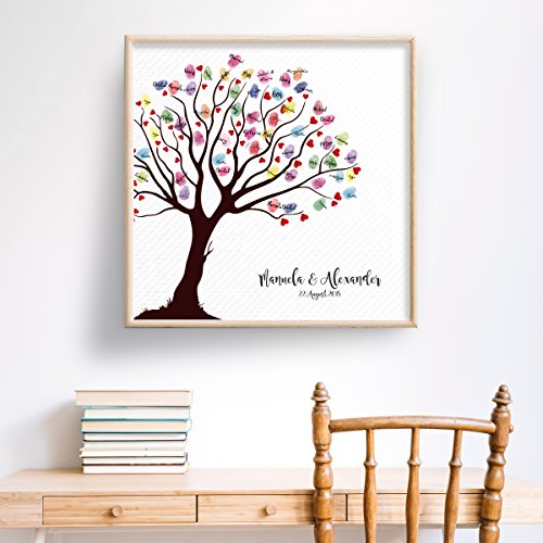 Stampa su tela di alta qualità con colori ricchi su tela piena. Tutti gli invitati al matrimonio possono lasciare le loro impronte digitali. Ideale per francobolli e per scrivere con penne.