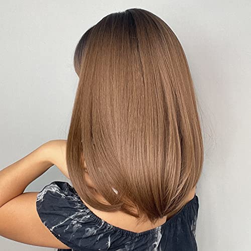 Maeau - Parrucca Donna Marrone Cosplay Capelli Veri Lisci Naturali Lunghe Ombre Bob per Feste Quotidiano