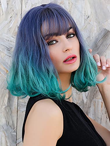 Maeau - Parrucca Donna Parrucca Ondulata Capelli Veri Parrucca Riccia Parrucca Media Lunghezza Naturale Parrucche Sintetiche Colorate per Ragazze Cosplay Party Quotidiano - Verde