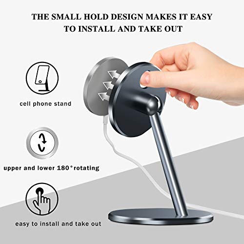 Stabile e antiscivolo: il supporto del telefono cellulare è realizzato in una lega di alluminio di alta qualità con una bella finitura. Dimensioni del palmo, occupa pochissimo spazio sulla scrivania 【ANGOLO DI VISUALIZZAZIONE PERFETTO 180 Questo supporto per telefono rotante di 180 gradi con angolo di visione verticale offre un angolo di visione estremamente confortevole.