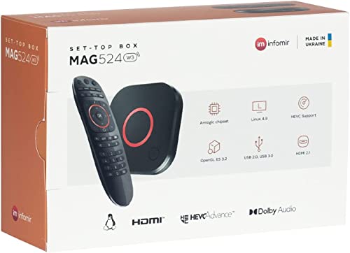 MAG524w3 sono set-top box Linux 4K ad alte prestazioni. Questi dispositivi MAG di nuova generazione sono dotati di un chipset Amlogic S905X2, una nuova GPU e un processore ARM Cortex-A53 più potente del 25%.