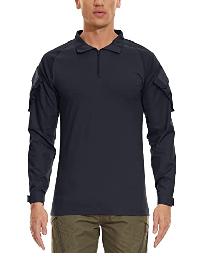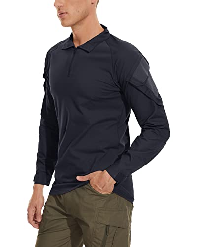 Magcomsen, Maglietta a maniche lunghe con cerniera, stile militare, slim fit, da uomo, Uomo, Black, UK M=Tag XL(Fit Your Chest 36"-39")