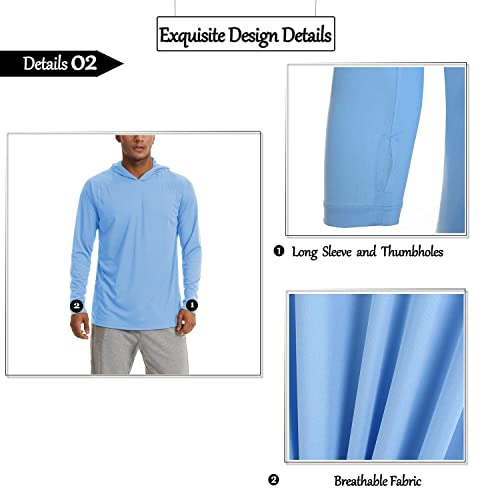 MAGCOMSEN Maglietta a maniche lunghe traspirante, leggera, estiva con cappuccio, ad asciugatura rapida, sportiva, con foro per il pollice, per pesca, escursionismo, trekking, Blu marino, XXXL
