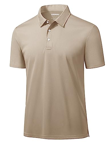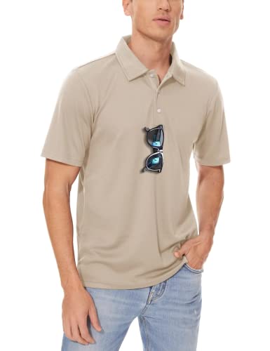 MAGCOMSEN Polo estiva da uomo, ad asciugatura rapida, da tennis, casual, con 3 bottoni, cachi, S