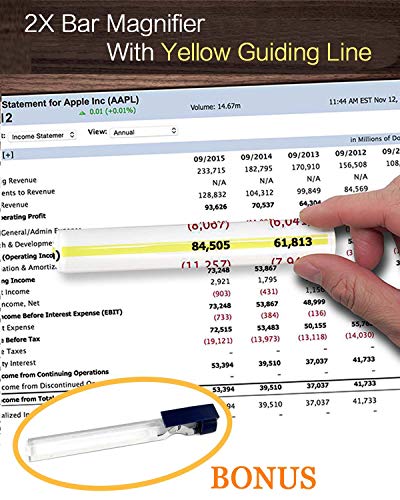 MAGDEPO Lente di ingrandimento 2 barre con linea di guida colore 1 bonus, barra di ingrandimento 2x bastone con lente di ingrandimento clip per lettura di libri, riviste e piccole stampe