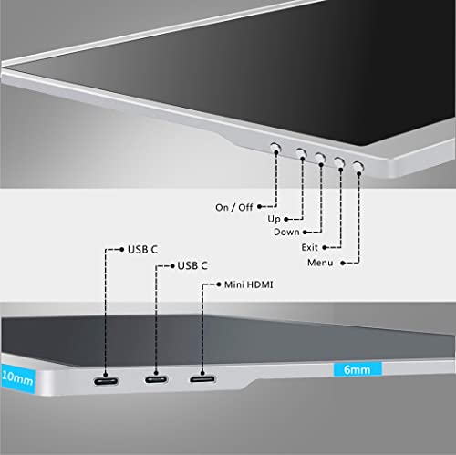 ingresso multi-porta: Monitor portatile per computer da 15,6 pollici ha porta Type C e mini HDMI. altoparlanti doppi incorporati.Non c'è bisogno di installare i driver quando si collega al dispositivo. Plug and play, che consente di espandere lo schermo e proiettare immagini simultaneamente per il lavoro o l'intrattenimento.Ha anche un jack per cuffie in modo da poter giocare e guardare video.
