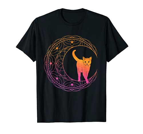 Magia Nera Animale Gatto Strega Mandala Luna Crescente Maglietta