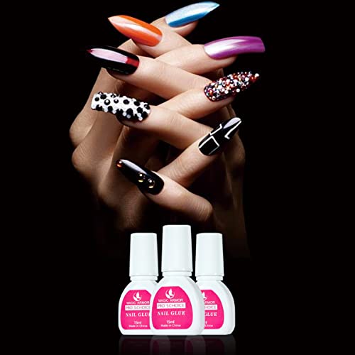 MAGIC ARMOR Colla per Unghie (60ml) per Unghie Acriliche, Colla per Unghie per Unghie Rotte Colla Professionale Veloce e Forte con Punte per Unghie Finte, Adesivo per Unghie Super Adesivo