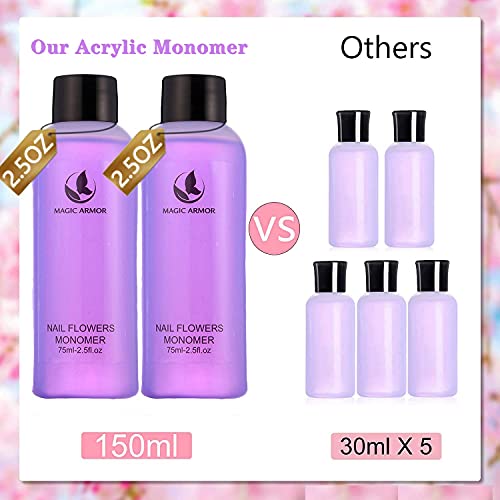 MAGIC ARMOR Monomero Liquido Acrilico - 2 * 75ml Acrilica Per Monomero Liquido Professionale Kit Sistema Unghie Monomero Liquido Per Estensione Unghie Acriliche Tempo Di Asciugatura Rapida