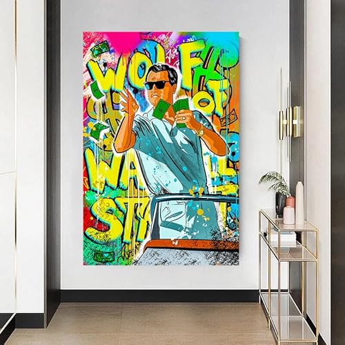 Magic Canvas Art Wolf Wall Street Auto Pop Art B8498 - Quadro su tela, 1 pezzo, 160 x 120 cm