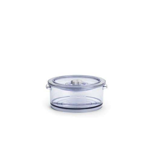 CONTENITORI SOTTOVUOTO PER ALIMENTI: Il contenitore Executive tondo da 4 1.5 litri di Magic Vac misura 23x10 cm ed è realizzato interamente in SAN, uno specifico materiale trasparente adatto al contatto e alla conservazione degli alimenti, del tutto privo di BPA e ftalati