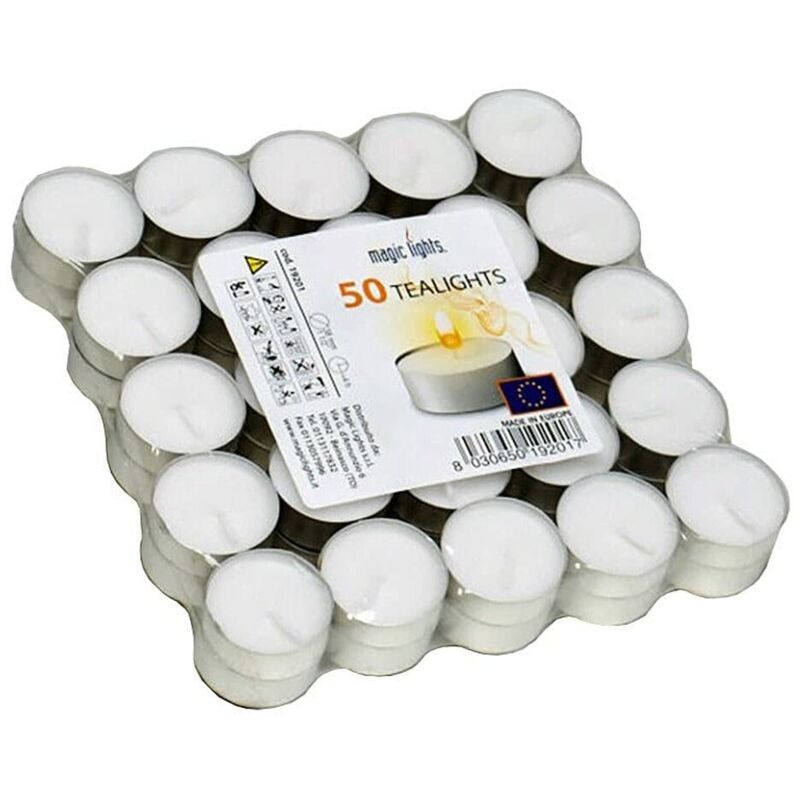 Confezione 50 candele bianche 12gr. Luci magiche. . . Indice di protezione IP: IP20 Colore: Bianco Modulo: Candela Certificazione: QUESTO Garanzia: 2 anni Ricaricabile: NO Disponibilità: Spedizione entro 8 giorni