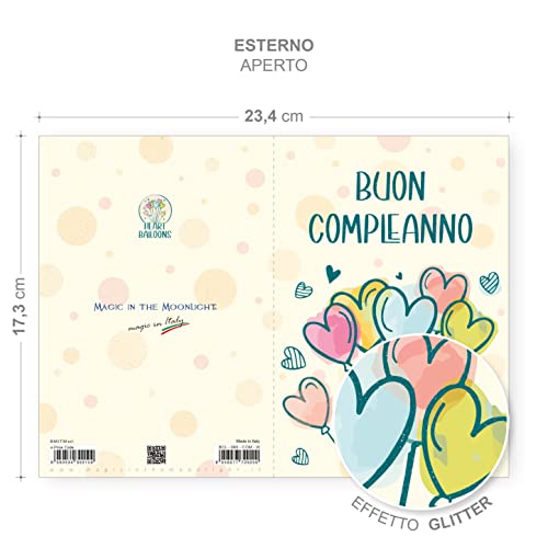 Magic In The Moonlight Biglietto COMPLEANNO auguri | busta regalo abbinata | dimensioni 18 x 12 | fatto a mano e Made in Italy HEART BALLOONS