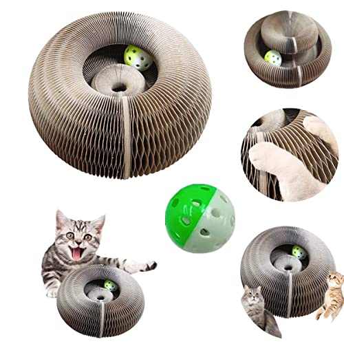 Magic Organ Cat Scratching Board,Cat Grinding Claw Scratching Board,Foldable Convenient Cat Scratcher Durable Recyclable,Interactive Scratcher Cat Toy,Comes With A Toy Bell Ball,Cat Scratching Ball