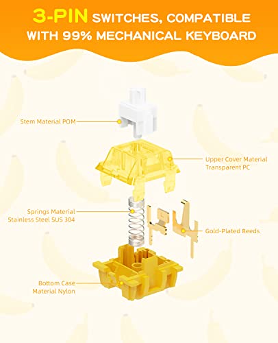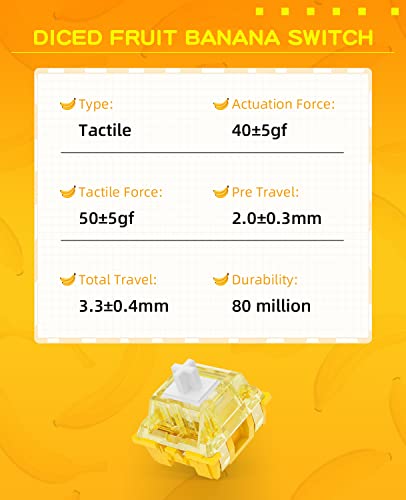 MAGIC-REFINER Diced Fruit Banana Switch per Tastiera Meccanica, Switches Tactile, 3Pin 40gf, SMD Esposto Nord, Coperchio Trasparente, Interruttore MX per DIY Tastiera Gaming(45+1 Pezzi Lubrificato)