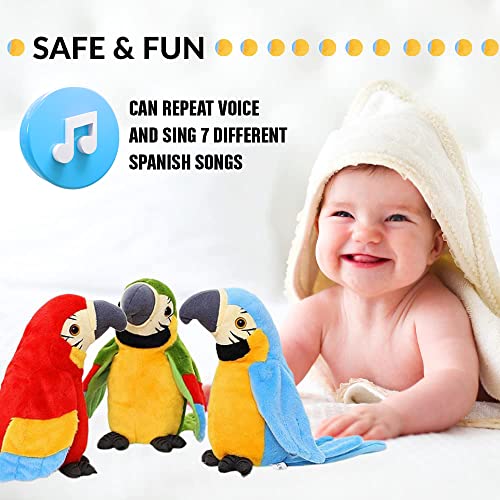Pappagallo parlante che canta e balla: peluche in morbido peluche che riproduce i suoni in cui sente e riproduce anche fino a 7 diverse canzoni in spagnolo. Adatto per l'uso da parte di bambini dai 3 anni in su. Il pappagallo può riprodurre suoni come risate, canti, frasi, quindi diventa molto divertente e divertente per i più piccoli.