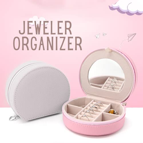 MAGIC SELECT Piccolo Portagioie Rotondo da Viaggio. Mini Organizzatore di Gioielli. Portagioie Portatile con Specchio e Cerniera per Anelli, Orecchini, Bracciali, Collane.