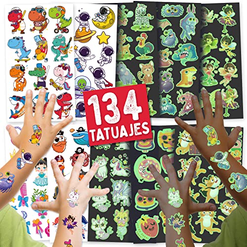 Magicat Premium tatuaggi luminosi per bambini I 134 attraenti tatuaggi adesivi I Tatuaggi adesivi al neon per bambini perfetti per i compleanni dei bambini, come regalo o per qualsiasi festa