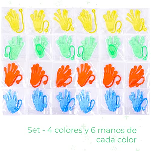 ♂️ GIOCATTOLO PER TUTTI: Le 24 mani appiccicose sono fornite in set di sei nei colori giallo, verde, rosso e blu - rendendo questo set ideale per le bomboniere di compleanno dei bambini.