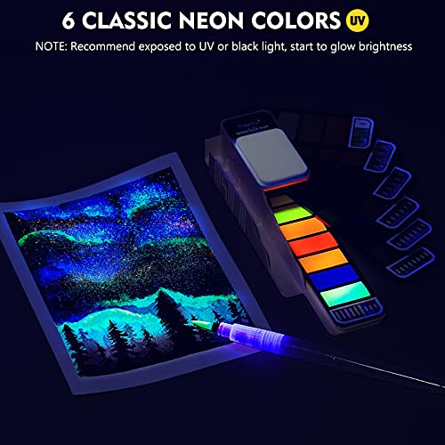 Alta qualità e sicurezza: il set di colori ad acquerello Magicfly è realizzato con pigmenti di alta qualità, quindi queste vernici hanno colori brillanti, un forte potere colorante e un eccezionale effetto di fioritura. Questi acquerelli possono essere miscelati per creare nuovi colori per soddisfare la tua infinita immaginazione ed esprimere la tua creatività. Con 6 colori fluorescenti, può rendere il tuo progetto ancora più accattivante.