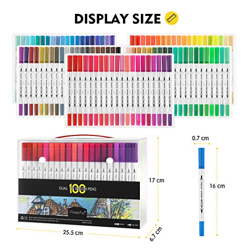 Magicfly Pennarelli a Doppia Punta 100 Colori, Brush Pen Lettering Punta Fine 0,4 mm e Punta di Pennelli 1-2mm, Pennarelli Acquerellabili Penne per Calligrafia, Manga, Illustratori di Bambini