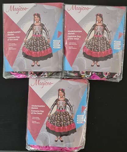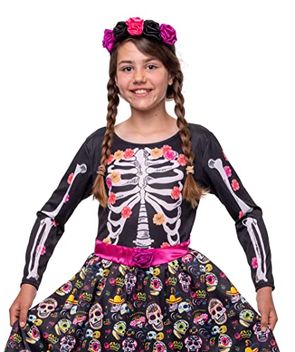 Magicoo Grazioso costume da scheletro messicano per bambini e bambine Day of the dead Día de los Muertos (M)