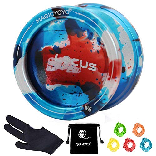 MAGICYOYO Yoyo per Bambini V6 Locus Responsive Yoyo Metallo Yoyo per Principianti, + 5 Archi, Borsa Yoyo, Yoyo Guanto (Blu e Rosso e Argento)