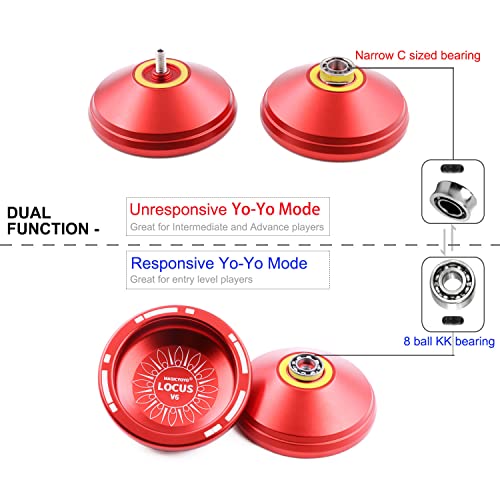 MAGICYOYO V6 LOCUS Space Beginner Yo-yos Responsive Yoyos Metal Yo-yo per bambini Yo Yo Set (Rosso- Yoyo reattivo e modalità duali non reattive)