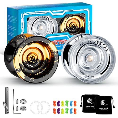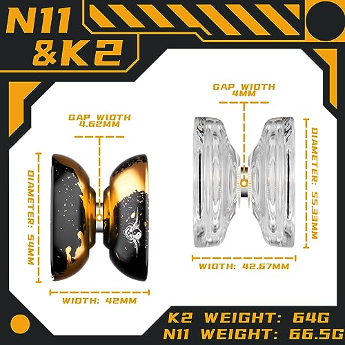 MAGICYOYO Yoyos, Responsive Yoyo K2 Crystal White, Professional Yoyo N11 Black Golden, Trick Yoyo Ball con 2 cuscinetti KK + 2 assi + 2 cuscinetti Yoyo + 2 sacche + 10 corde Yoyo