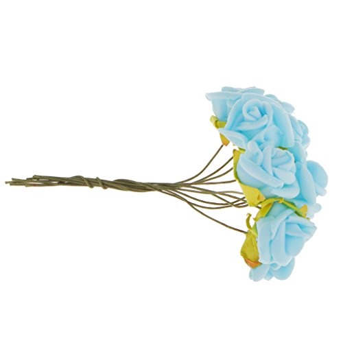 MagiDeal 100pz Mini Artificiali Rose Fiori Bouquet Sposa di Cerimonia Nuziale Decorazione Casa - Multicolore - Azzurro, 10 Centimetri