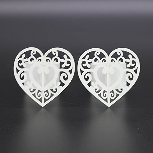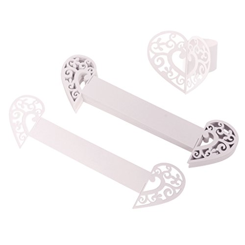 MagiDeal Anelli Portatovagliolo Cartone Cuore Con Supporto Da Tavolo Per Matrimonio Bridal Wedding 50 Pezzi - bianco