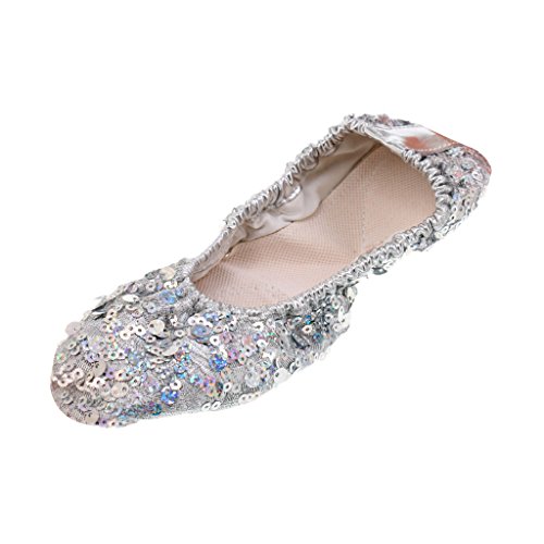 MagiDeal Coppia Scarpe di Danza Orientale in Paillettes Lucido Suola Morbida per Performance Scena, Argento