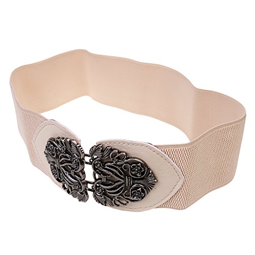 MagiDeal Donne Moda PU Pelle Ampia Cintura In Vita Con Fibbia Elastica Costume Decorazione Accessori - Beige, Taglia unica