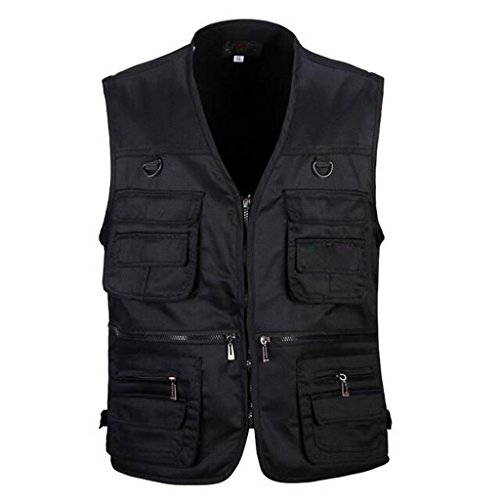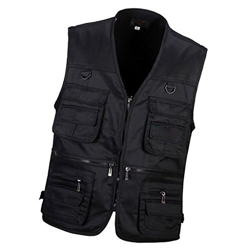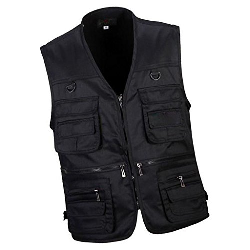 MagiDeal Giubbotto Giubbino dell'Esercito Giacche Gilet Maschile Multi Tasca con Zip Caccia Viaggio Pesca All'aperto - Nero, XL