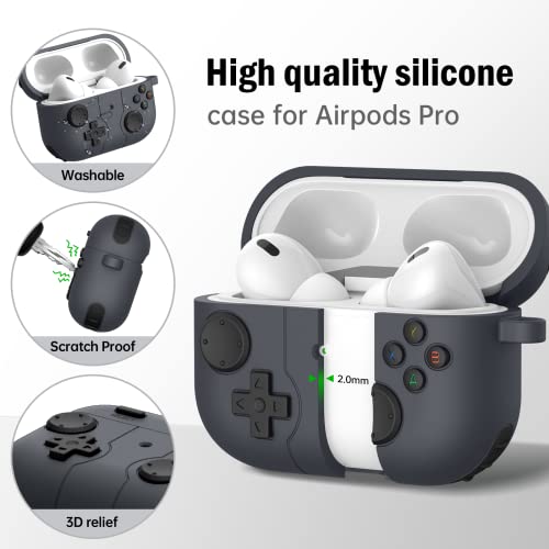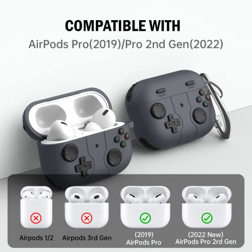 Magiho Cover Airpods Pro 2 | Gamepad Aspetto Design - LED Anteriore Visibile - Custodia Protettiva per Airpods Pro (2019) e Airpods Pro 2, Antigraffio, Antiurto (Grigio)